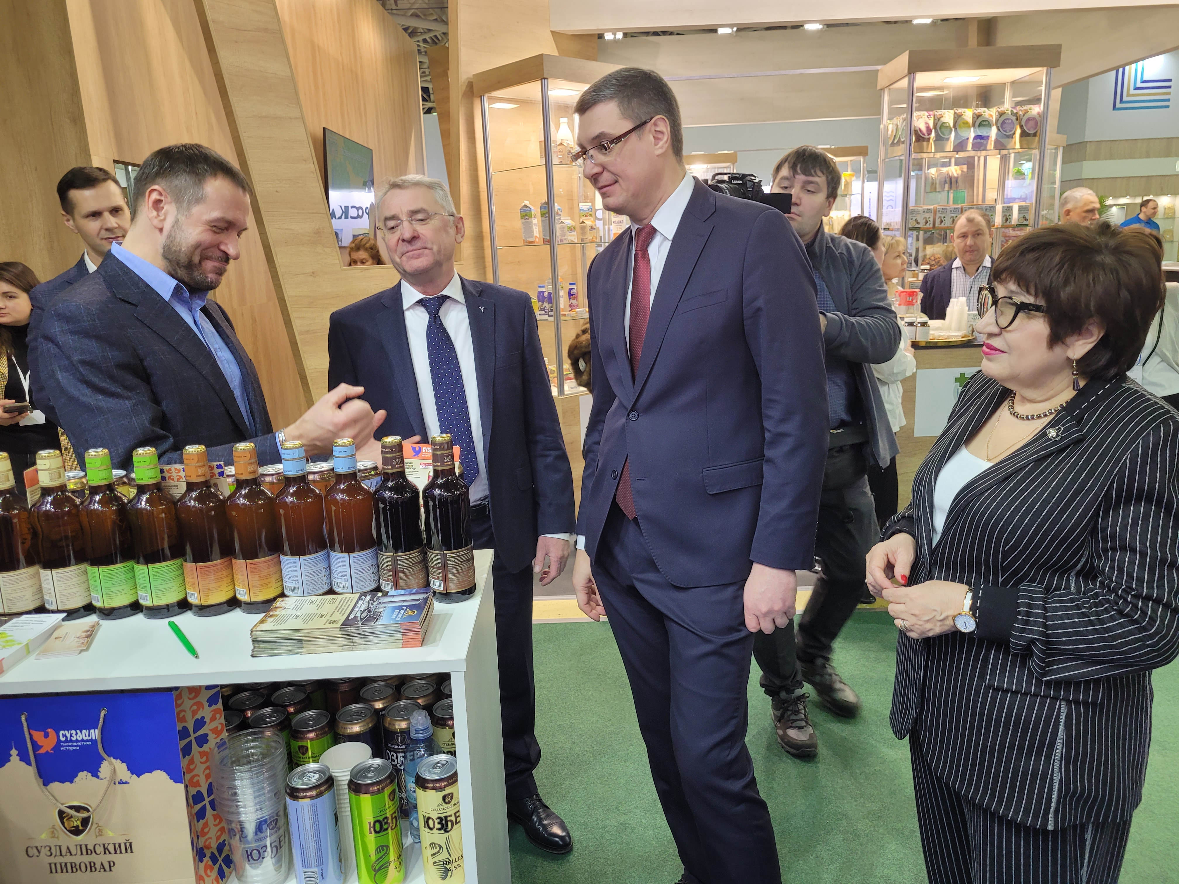 « В оформлении нашего павильона мы объединили бренд Владимирской области – «Сделано со смыслом» и «Экономика со смыслом», и бренд 1000-летия Суздаля. Ведь Суздаль – это не только точка притяжения туристов, но и лидирующий район в развитии агропромышленного комплекса области. Здесь располагается множество крепких предприятий, в том числе и те, что представлены на выставке. Наш павильон отличает удачная комбинация крупных и малых агропредприятий, уже состоявшихся и совсем молодых. Задача как раз и была показать всю палитру наших производителей и переработчиков сельхозпродукции », - подчеркнул министр сельского хозяйства Владимирской области Олег Пугаев.