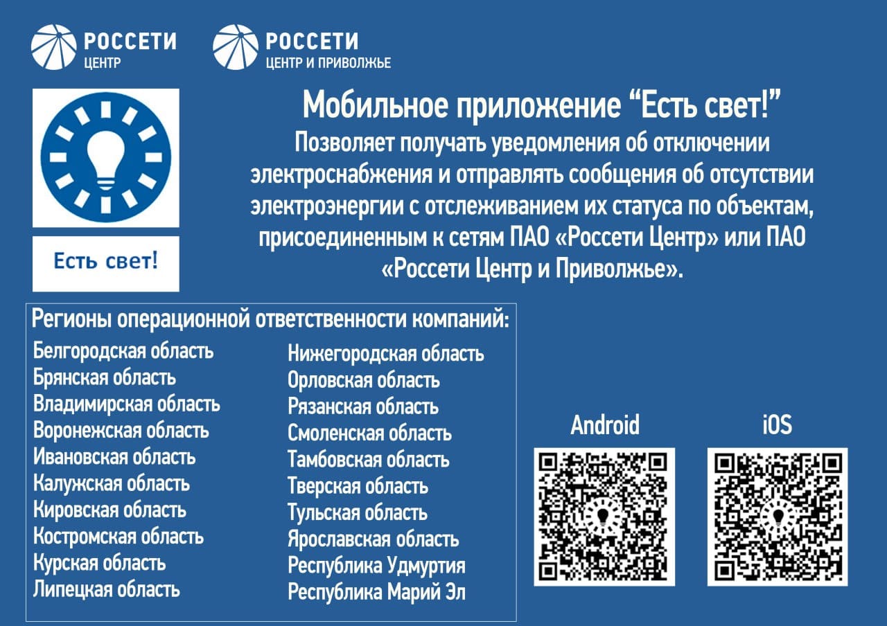 «Россети Центр» и «Россети Центр и Приволжье» запустили новое мобильное приложение «Есть свет!»