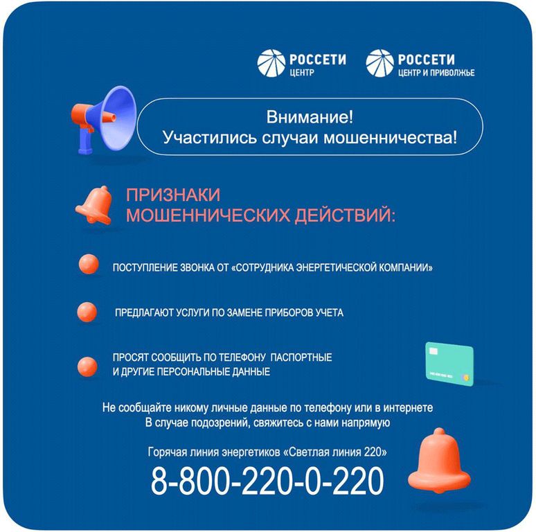 В последнее время наблюдается рост случаев мошенничества со стороны лиц, представляющихся специалистами «Россети Центр» и «Россети Центр и Приволжье». Эти злоумышленники используют телефонные звонки для предложения замены приборов учета электрической энергии.