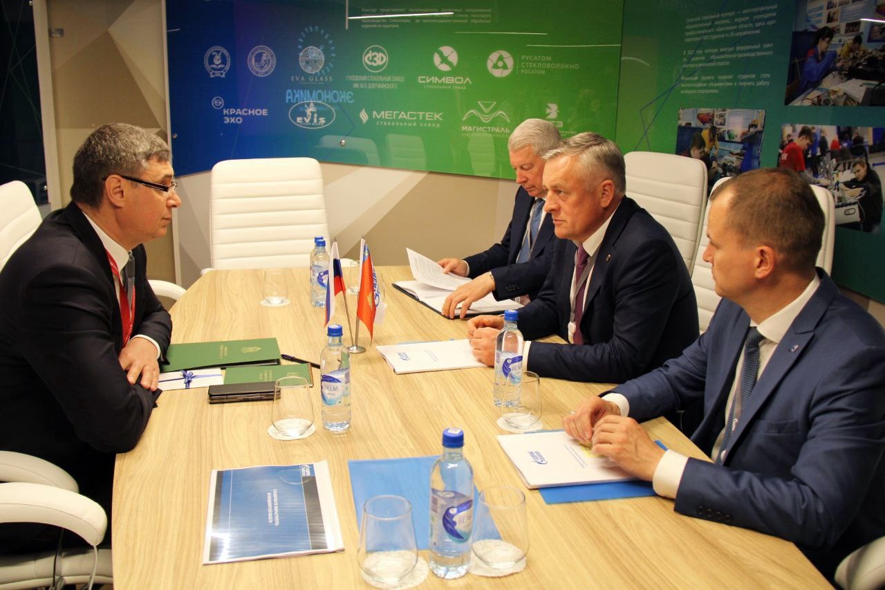 На стенде Владимирской области Губернатор также встретился с председателем Совета директоров ООО «Газпром СПГ технологии» Алексеем Кахидзе. Стороны обсудили перспективы развития в нашем регионе производственно-заправочной инфраструктуры сжиженного природного газа, реализации проекта «Новая модель транспортного обслуживания», а также вопросы поставки автотранспортной техники, использующей СПГ в качестве моторного топлива.