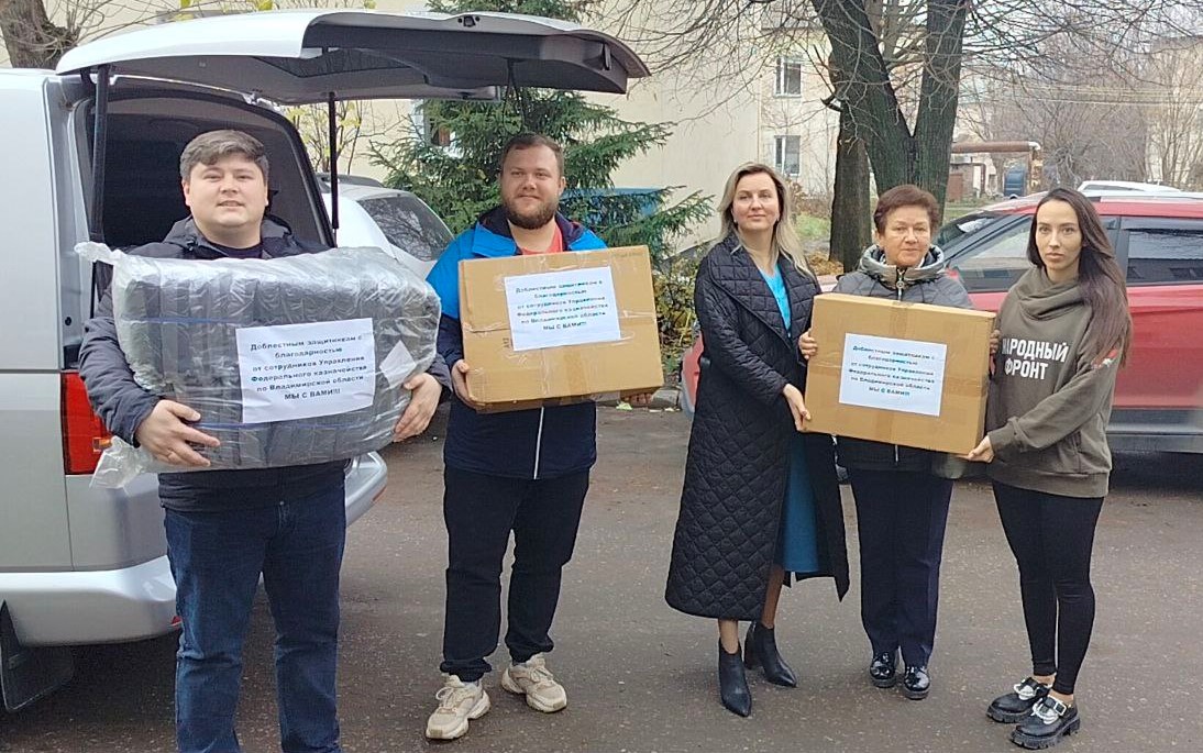 9 ноября 2023 года сотрудники Управления Федерального казначейства по Владимирской области в рамках проекта «Все для Победы» передали в региональное отделение Общероссийский народный фронт по Владимирской области очередную партию гуманитарной помощи для участников специальной военной операции. В связи с наступлением холодов были закуплены теплые носки, перчатки, нательное белье, футболки.