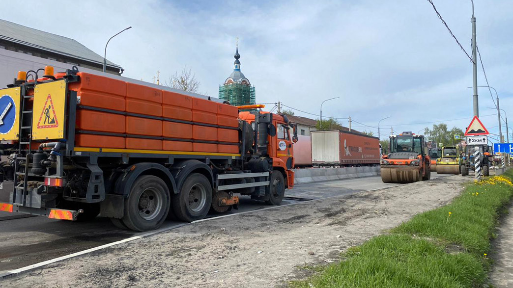 Оставшийся объем подрядная организация выполнит в 2023 году . В настоящее время работы ведутся на «захватке» по направлению в Москву от улицы Герасимова до Больничного проезда с ограничением движения через перекресток с ул.Карла Либкнехта. Специалисты подрядной организации отфрезеровали старое покрытие. Далее они устранили повреждения и провели санацию трещин в бетонной плите, которая находится в основании дороги. На подготовленную поверхность начали укладывать новое покрытие. До наступления праздничных дней эти работы на данном отрезке будут завершены и движение по нему запустят. На объекте задействовано необходимое количество техники и рабочих для выполнения конкретного вида работ. При проведении ремонта учитываются погодные условия».