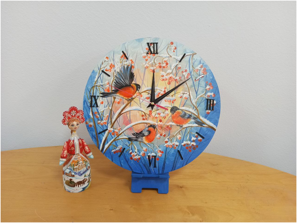Великолепная корона; ️добрые ватные игрушки; Емеля на печи, но не с щукой, а со змеей; расписные часы с яркими снегирями и, конечно же, хозяйка будущего года – мудрая змея и мн. другое! Выбрать лучшие работы конкурсной комиссии было непросто, т.к. все игрушки – достойные.