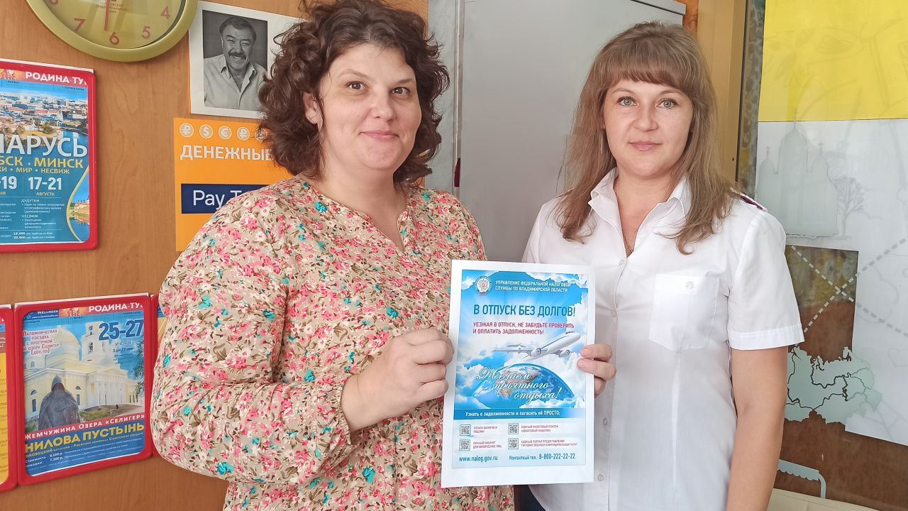 В разгар отпускного сезона сотрудники УФНС России по Владимирской области информируют туристические агентства г. Киржач о необходимости своевременной уплаты налогов и добровольного погашения имеющейся задолженности гражданами.
