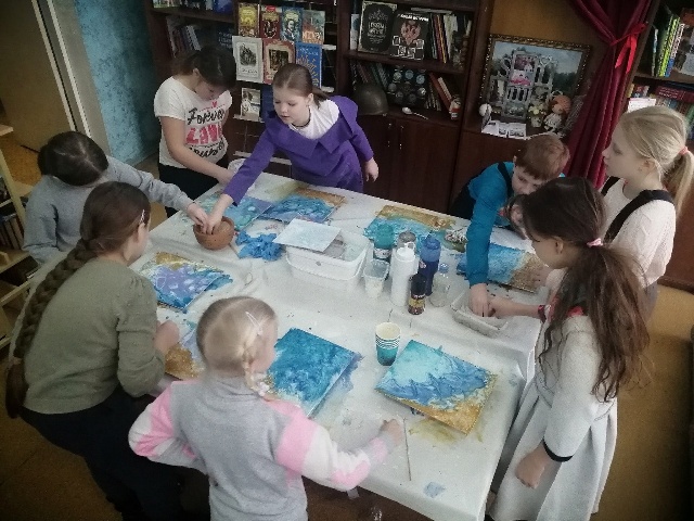 Чамеревская сельская библиотека пригласила ребят арт — студии «Капитошки» на МК «Морской берег» в техники «флюид — арт».
