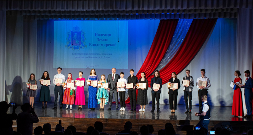 С 2015 года одаренным и талантливым детям и молодежи вручают единовременные персональные стипендии Правительства области «Надежда Земли Владимирской» - за выдающиеся успехи в области образования и науки, культуры, спорта, журналистики, детского и молодёжного общественного движения. В этом году их собрали на церемонию во Владимирском областном колледже культуры и искусства - стипендиатами стали 120 школьников и студентов области.