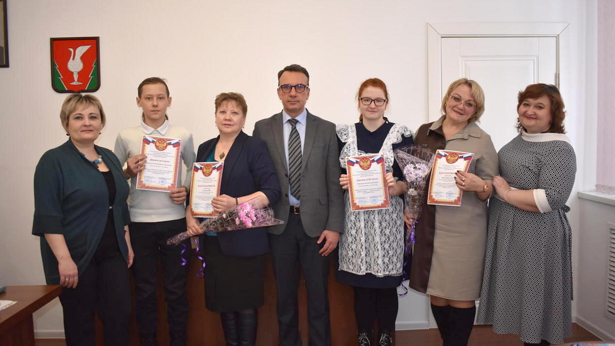 Глава администрации Гусь-Хрустального района Алексей Кабенкин поздравил победителя и призера областного творческого конкурса работ среди молодежи Владимирской области «Права человека глазами молодежи». 1 место в региональном конкурсе в номинации «Стих» занял ученик 9 класса Уршельской школы Константин Горячев. 3 место в номинации «Эссе» присуждено ученице 11 класса Красноэховской школы Ксении Рябиковой. Благодарности за подготовку ребят получили научные руководители Ирина Седова и Елена Жмулина.