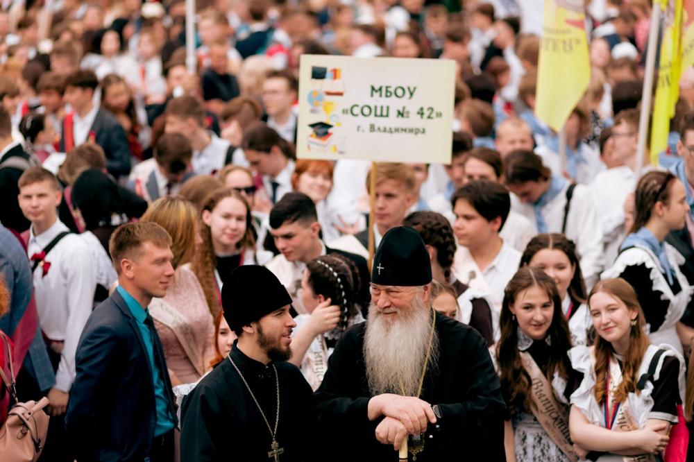 23 мая 2023 года митрополит Владимирский и Суздальский Тихон принял участие в общегородском мероприятии «Последний звонок», посвященном окончанию учебного года.
