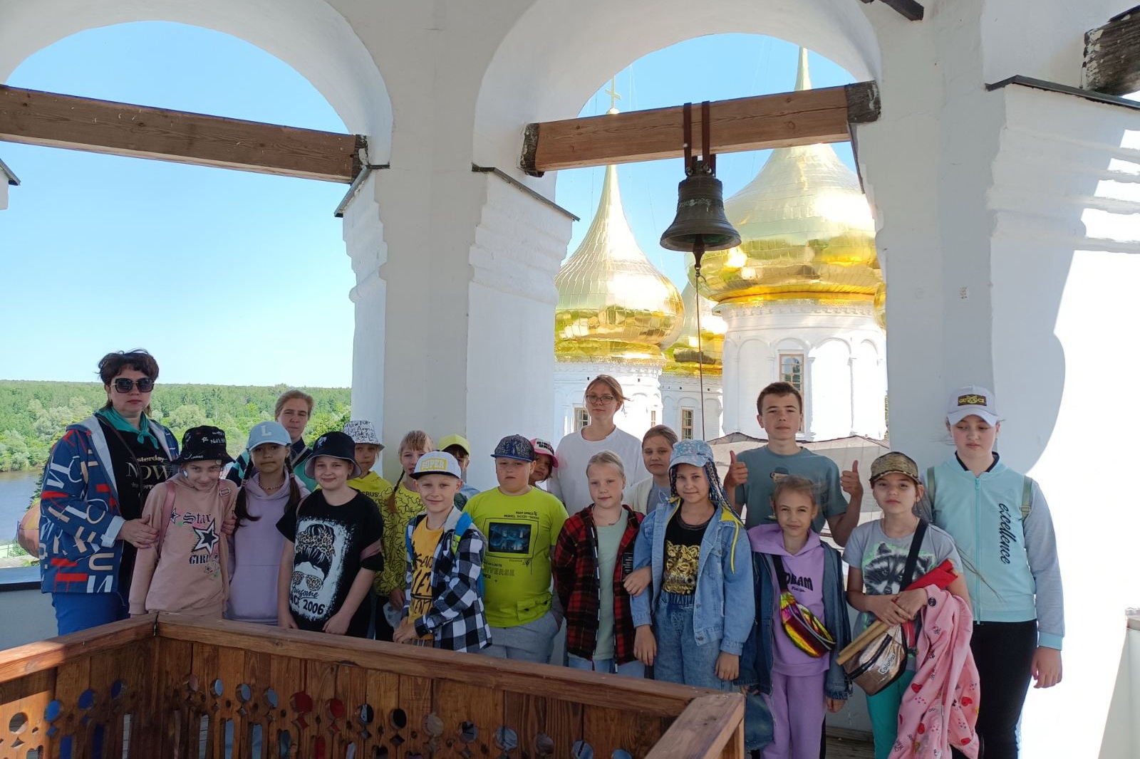 Пешеходный маршрут с посещением самой высокой Колокольни Благовещенского собора и осмотра фотовыставки С. Игумновой «Град Пресвятой Богородицы» стал самым запоминающимся среди воспитанников летний лагерей. В ходе экскурсии ребята не только знакомятся с историей города, его достопримечательностями, но и поднимаются на смотровую площадку Колокольни, где им представляется возможность позвонить в колокола.