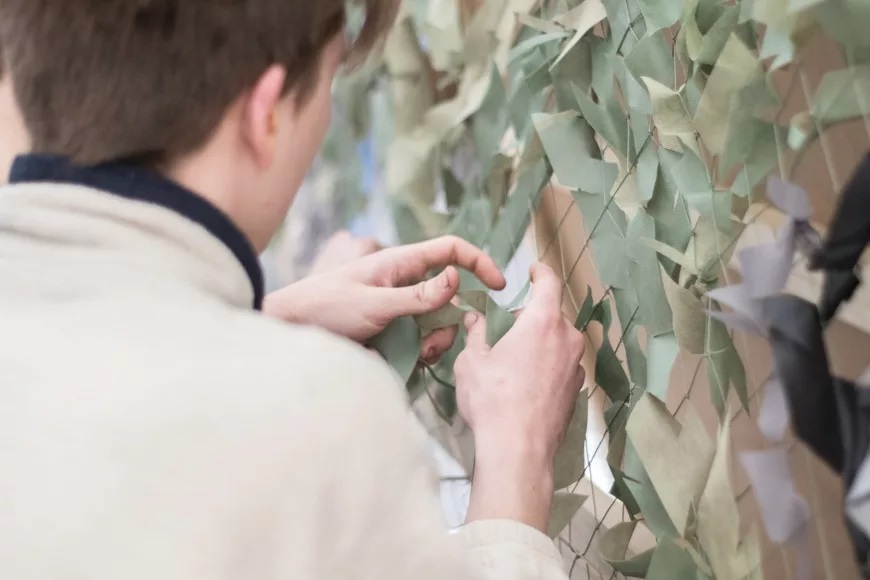 В академии студенты и преподаватели вуза и энергомеханического колледжа изготавливают защитные сети для маскировки блиндажей и военной техники.