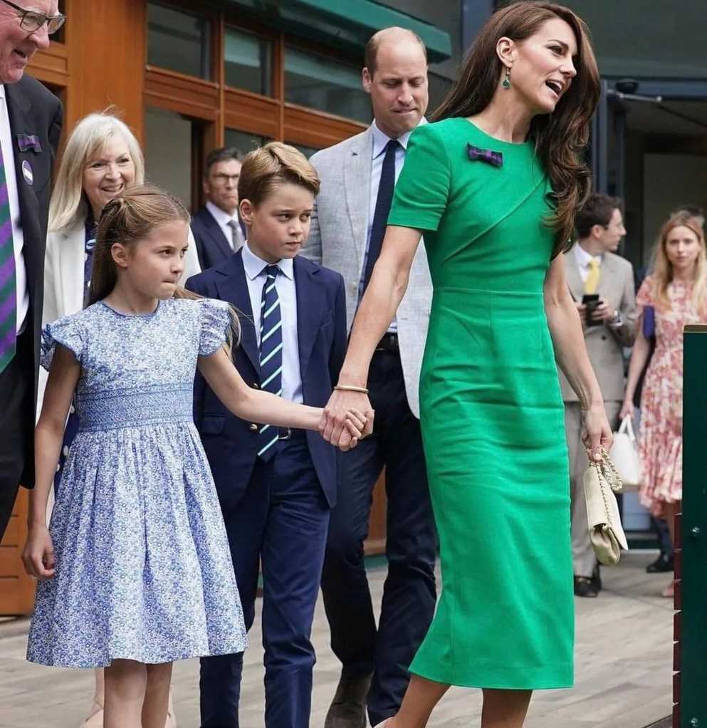 Кэтрин, как патрон Всеанглийского клуба большого тенниса и крокета, занимает важную роль на этом мероприятии, которую любезно предоставил ей ее супруг. Принцесса предстала в элегантном наряде в оттенках зеленого цвета. Она выбрала изящное платье изумрудного оттенка, которое идеально подчеркнуло ее стройную фигуру, несмотря на многодетное материнство.