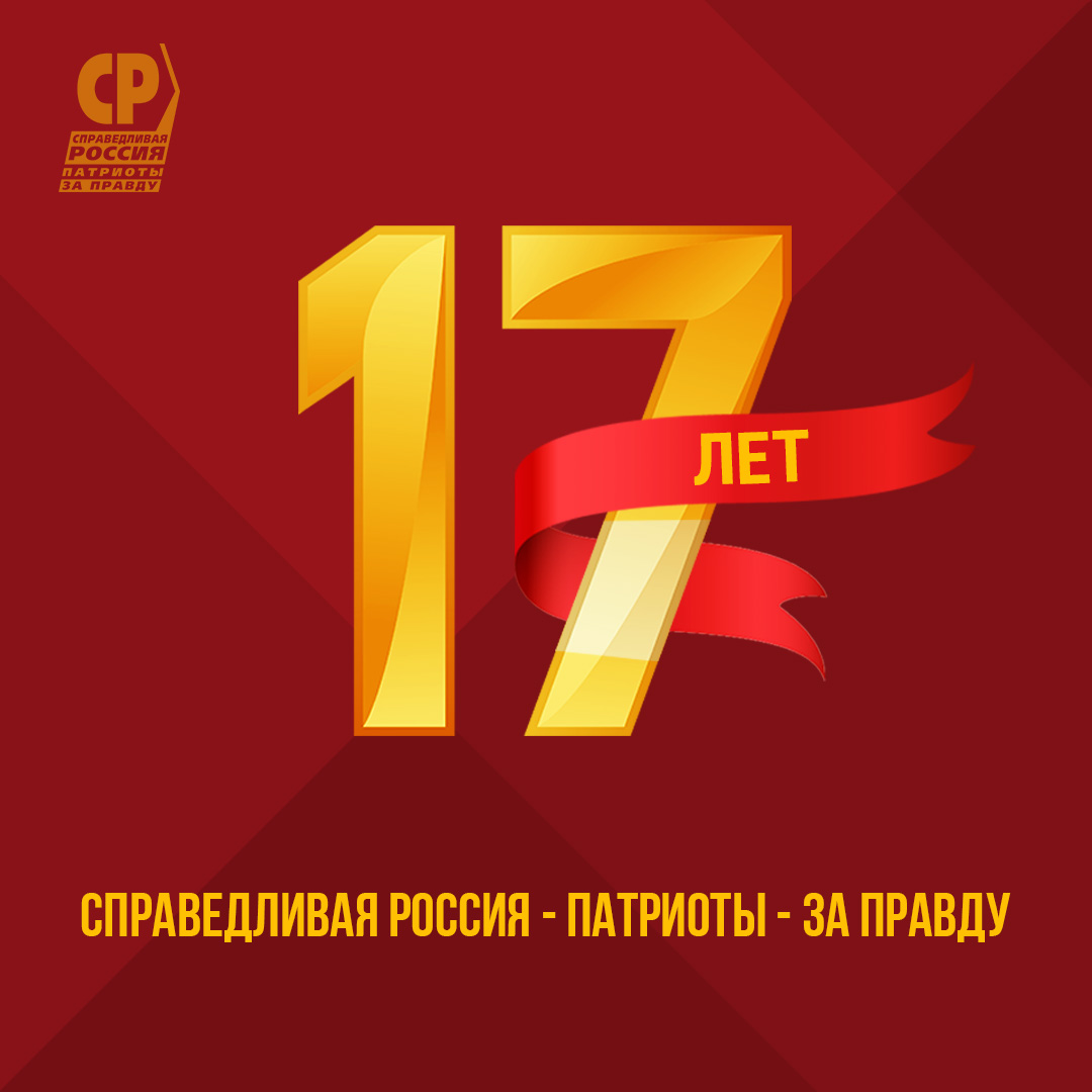 Поздравляю вас и всех неравнодушных, думающих и активных граждан нашей страны с 17-летием Социалистической политической партии "СПРАВЕДЛИВАЯ РОССИЯ – ПАТРИОТЫ – ЗА ПРАВДУ" ! 17 лет борьбы за правду и справедливость сплотили нас, мы радовались успехам, преодолевали трудности и всегда оставались верны нашим идеалам. Благодаря нашей стойкости и убеждённости – Россия будет справедливой!