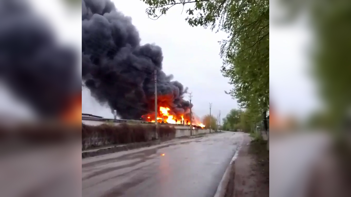Очевидцы сняли эпичные кадры открытого огня, полыхающего на складском помещении.