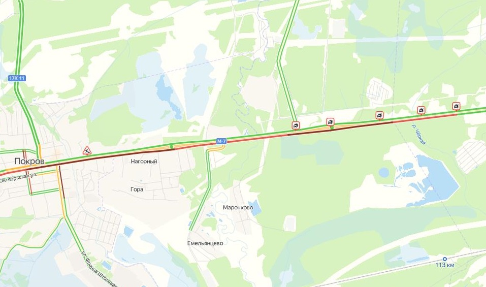 По предварительным данным "Яндекс.Пробки", на участке М-7 от деревни Старые Омутищи до Покрова сегодня произошли сразу 4 ДТП. Они и стали помехой для проезда автомашин по М-7.