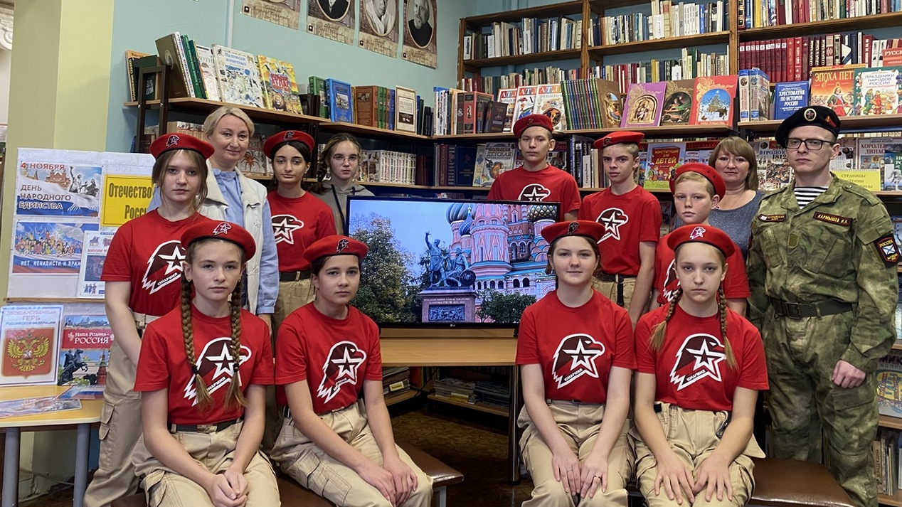 4 ноября наша страна отмечает День народного единства – дань памяти нашей славной истории. В канун праздника юнармейцы МБОУ «Курловская СОШ» с кураторами Кармышевым И.А. и Потаповой Т.Б. посетили городскую библиотеку семейного чтения.