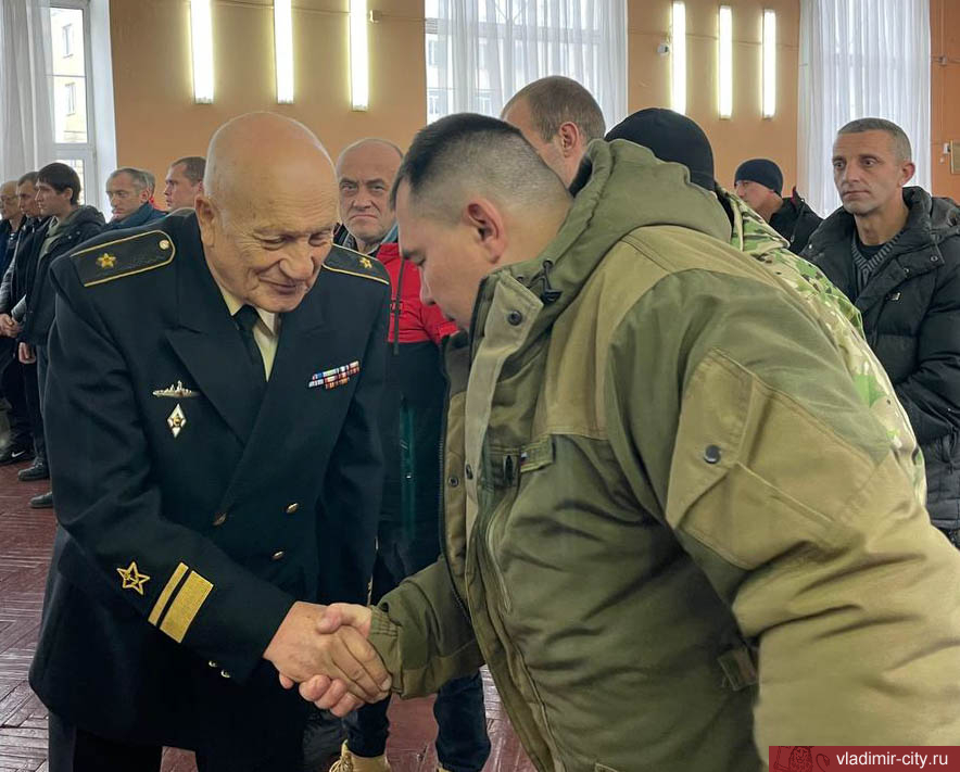 Ветеран военно-морского флота, контр-адмирал запаса Геннадий Жерин отметил, что, приняв решение защищать Родину, добровольцы достойно продолжат славные воинские традиции владимирцев и вернутся с Победой.