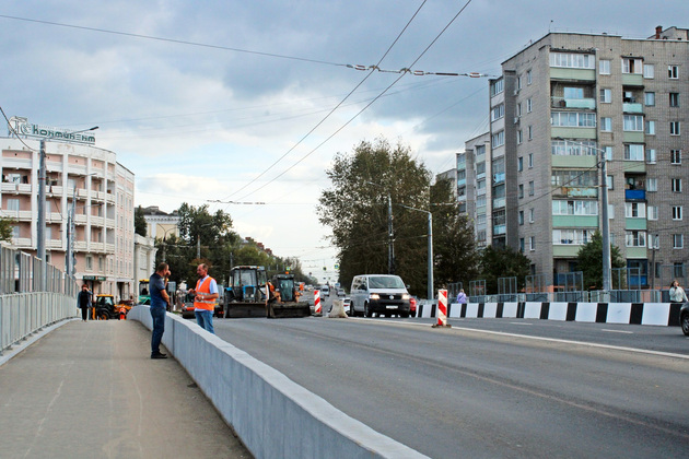 Фото пресс-службы правительства Владимирской области.«Жители полтора года мирились с неудобствами, но их терпение будет вознаграждено. Мост запустят в эксплуатацию ко Дню города с опережением графика. В целом дорожные работы – это сейчас приоритет для Коврова, важно, чтобы накопленный износ и разбитые улицы ушли в прошлое. При этом необходимо уделить внимание тротуарам, на следующий год планируем именно на этом сконцентрироваться», – сообщил Александр Авдеев .