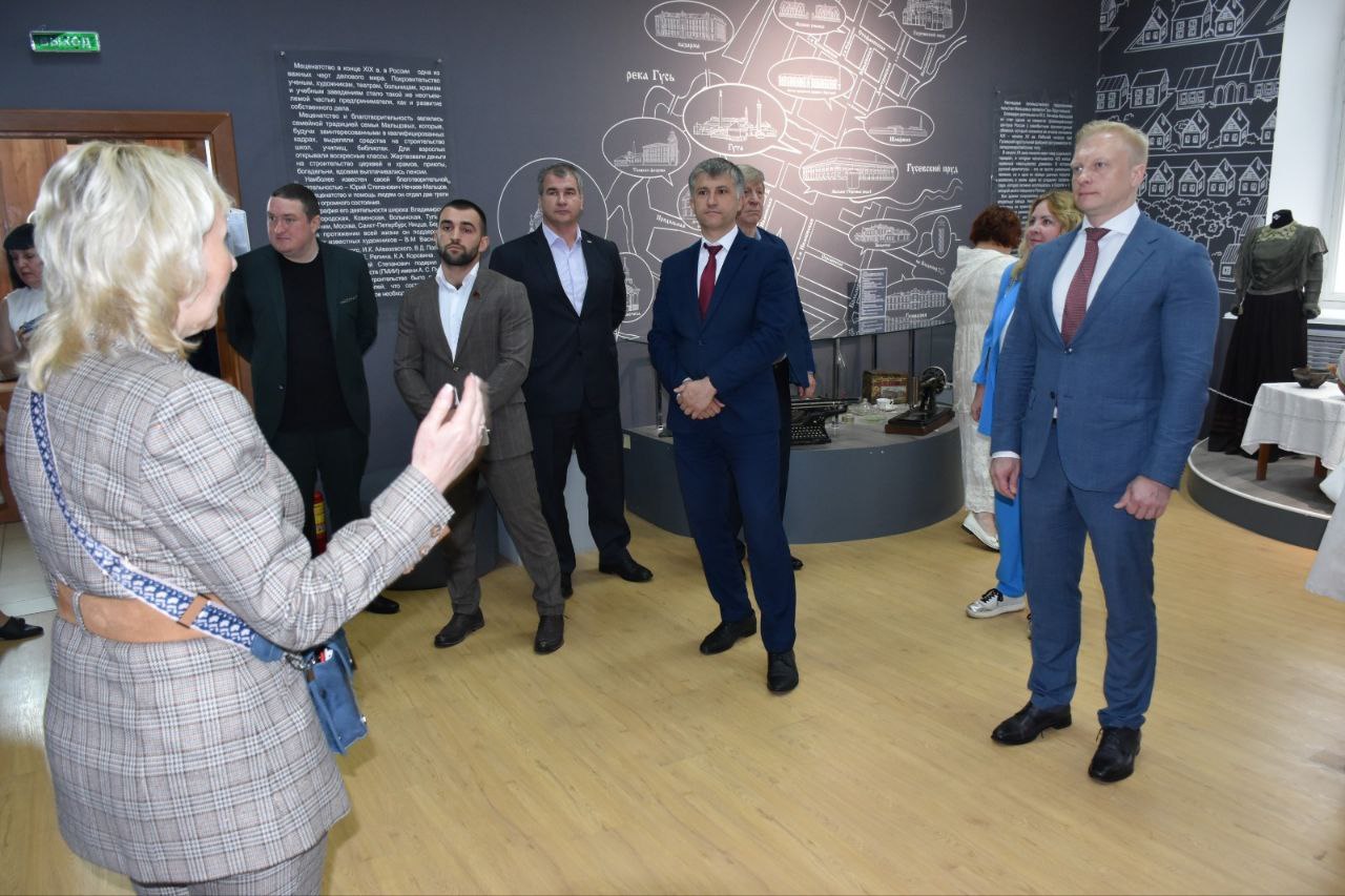 В День города гости праздника посетили Гусь-Хрустальный историко-художественный музей. Напомним, что в 2021 году в рамках национального проекта «Культура» для муниципального учреждения культуры были предусмотрены средства в размере 9,4 млн руб. с учетом софинансирования. Выделенные деньги затратили на техническое оснащение музея, расширение и открытие новых интересных экспозиций и оборудование фондохранилища. Внутреннее убранство музея приобрело современный вид и привлекло большое число посетителей и туристов. Экскурс вглубь веков предложила гостям председатель комитета по культуре и туризму Валентина Кустарова, представившая краткую историческую справку, начиная от зарождения жизни в Мещерской низменности, рождения и становления Гусь-Хрустального и до наших дней. Делегация в составе представителей руководства города, депутатского корпуса, предприятий и организаций посмотрела, чем сегодня живет историко-художественный музей. Новейшие экспозиции, отражающие вехи развития гусевской стекольной промышленности, не оставили посетителей равнодушными. Историко-художественный музей приглашает жителей и гостей города посетить интересные интерактивные выставки.