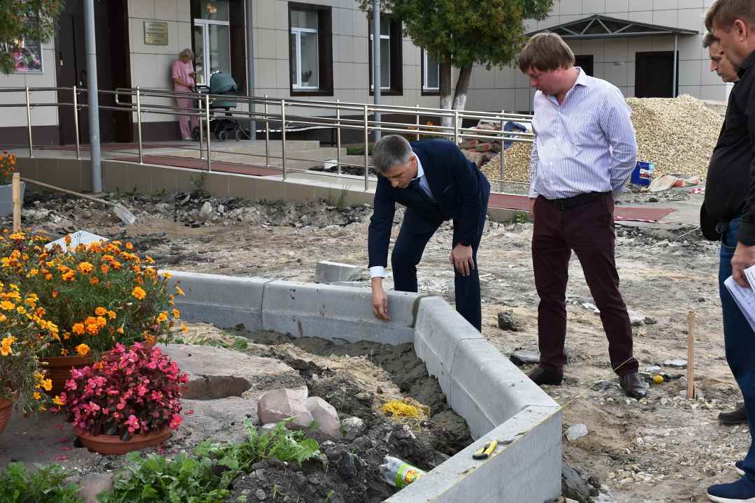 Глава города Алексей Соколов проинспектировал ход выполнения работ по благоустройству территории у здания ДШИ им. М.А. Балакирева по улице Кирова