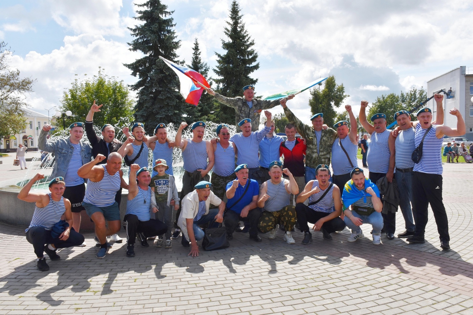 На площади у фонтана в Гусь-Хрустальном по доброй традиции состоялся концерт с символичным названием «Никто, кроме нас!» - в честь «крылатой пехоты». С приветственным словом к воинам-десантникам обратился первый заместитель главы администрации города Александр Ширков, назвавший школу Воздушно-десантных войск школой мужества и достойных защитников Отечества. Слова поздравлений и добрых пожеланий главным героям праздника адресовали председатель Совета народных депутатов Николай Мокров и депутат Законодательного Собрания Владимирской области Николай Балахин.