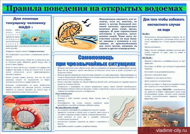 Управление гражданской защиты города Владимира регулярно напоминает о том, какую смертельную опасность таит в себе водная стихия. Но, не смотря ни на что, человеческая неосторожность, неосмотрительность становится причиной настоящих трагедий. Любителям отдыха у воды следует помнить, что жизнь и безопасность в первую очередь зависит от их самодисциплины и ответственности, как за себя, так и за тех, с кем они отдыхают. Несоблюдение правил поведения на воде может привести к трагическому исходу!