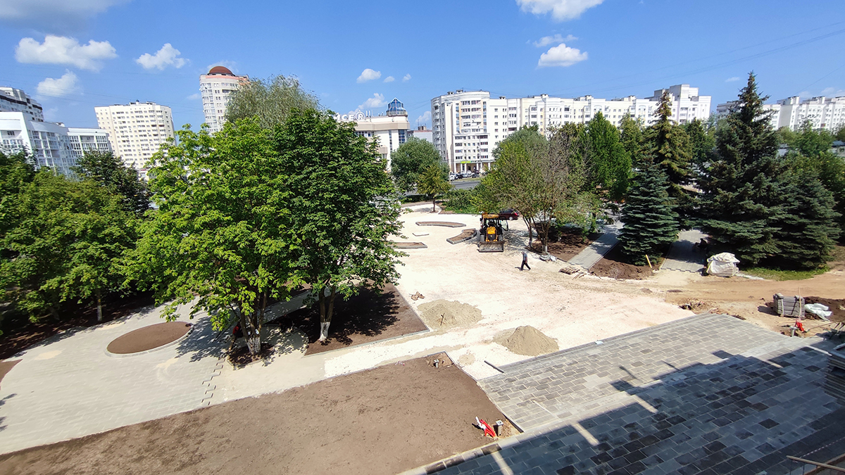 Уже сейчас хорошо видны очертания будущей зоны отдыха: рабочие укладывают плитку на дорожках, монтируют элементы детской площадки. Обозначены будущие клумбы, места для лавочек и элементов освещения. Параллельно идет ремонт фасада и входной группы здания на проспекте Ленина,53. В сквере у детской поликлиники оборудуют долгожданную парковку для детских колясок и велосипедов с навесом. Впоследствии здесь появится памятник генерал-лейтенанту Кутузову, который рос в доме по соседству со сквером.