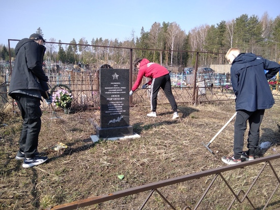 Волонтёры муниципального штаба и КМК навестили могилу солдата на Борисо-Глебском кладбище рядом с д. Федоровское, убрали мусор, сухую листву и траву, обновили ограду.
