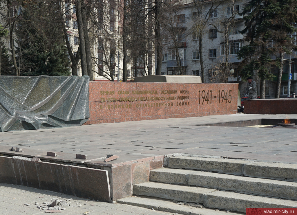 Но самые масштабные работы впереди. Мемориал с Вечным огнем построен в 1975 году и нуждается в большом ремонте. По заданию главы города Владимира Дмитрия Наумова, специалисты мэрии проводят необходимые консультации с коллегами из областной Инспекции по охране объектов культурного наследия и готовят документацию на производство ремонтных работ с соблюдением требований охранного законодательства.