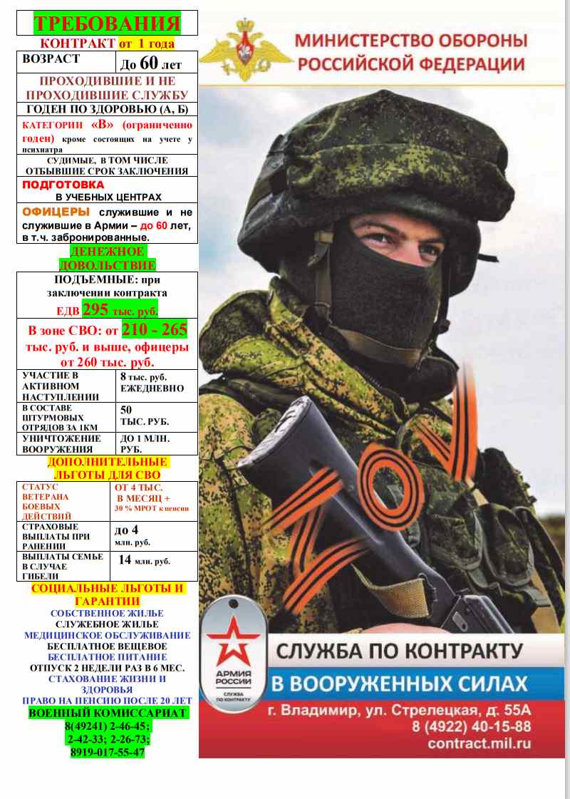 По всем вопросам прохождения службы по контракту – обращайтесь по телефонам военного комиссариата: 8 (49241) 2-46-45; 2-42-33; 2-26-73; 8-919-017-55-47.