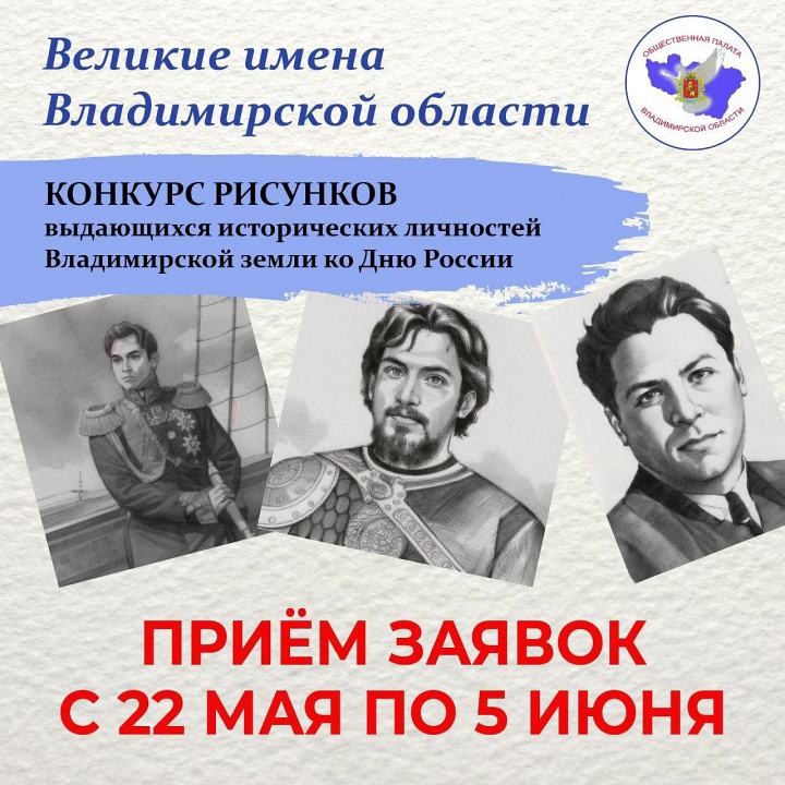 Общественная палата Владимирской области объявляет онлайн-конкурс рисунков «Великие имена Владимирской области»