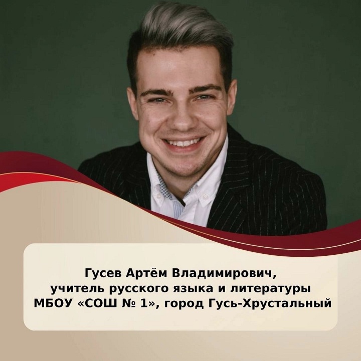Артём Владимирович Гусев, учитель русского языка и литературы школы №1 Гусь-Хрустального, принимает участие в финале Всероссийского конкурса «Лучший учитель родного языка и родной литературы»!