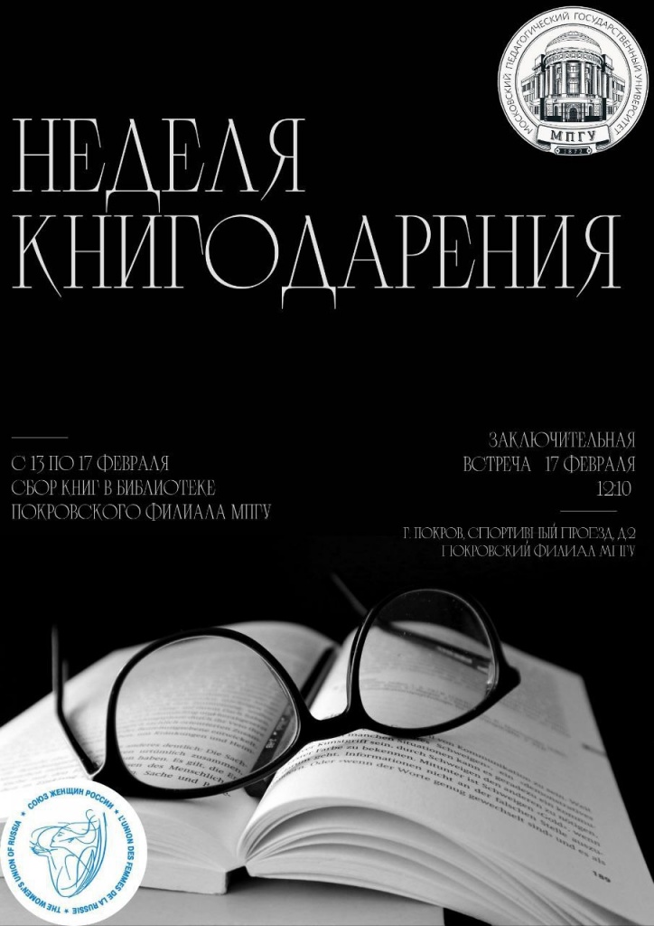 Покровский филиал МПГУ совместно с общественной организацией «Союз женщин Петушинского района» объявляет акцию «Неделя книгодарения».