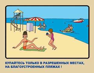 Всегда плавай в специально предназначенных для этого местах, на оборудованных и безопасных пляжах Не заплывай за буйки, не подплывай близко к судам, чтобы тебя не засосало под работающий винт Не плавай при больших волнах, сильном течении или водоворотах Не ныряй в местах с неизвестным дном Не играй на воде в опасные игры, не «топи» друзей и не ныряй глубоко Матрасы и спасательные круги не предназначены для того, чтобы заплывать далеко, плавай на них недалеко от берега Если светит солнце, то носи летом головной убор Не находись долго на солнце, если ты чувствуешь. Что кожа начинает печь и краснеть, немедленно уйди в тень или оденься Старайся не быть под прямым солнцем днем, а только утром и ближе к вечеру Не бери с собой в жаркое место и не ешь продукты, которые быстро испортятся: мясо, колбаса, рыба, молочные продукты Пей много воды летом, но старайся не пить сладкую воду, от неё еще больше хочется пить Всегда ешь вымытые продукты и мой перед едой руки Если рядом насекомые, то не делай резких движений. Если ты кушаешь, то будь осторожен, чтобы насекомое не попало в рот и не ужалило Не подходи близко к собакам, особенно если у собаки щенки и собака кушаетНе общайся с незнакомцами (ни с мужчинами, ни с женщинами), ничего не бери у них и не веди к себе домой, не называй свой адрес, фамилию, телефон. Взрослый должен просить помощи у взрослого, и не должен обращаться к ребенку! Если тебя кто-то схватил и тащит, то зови на помощь и кричи, что это не твои родители, обращай на себя внимание прохожих. Если тебя преследуют, то иди в сторону родителей или просто людные места (нельзя забиваться в тупики или заходить в темные подъезды), проси помощи у полицейского, охранника, продавца или просто взрослых людей.