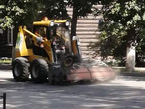 Механизированная уборка тротуаров проводится на ул. Грибоедова, ул. Лепсе, ул. Краснознамённой, ул. Т.Пвловского, пр. Ленина, ул. Чернышевского. Задействованы 2 трактор, водовоз КДМ.