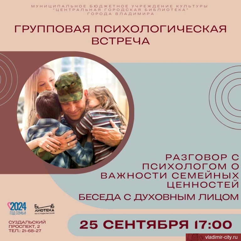 25 сентября в Библиотеке на Суздальском пройдет групповая психологическая встреча в рамках проекта, направленного на поддержку психического здоровья жителей города. Это событие станет важной вехой в укреплении общественного сознания о необходимости заботы о своем психическом состоянии.