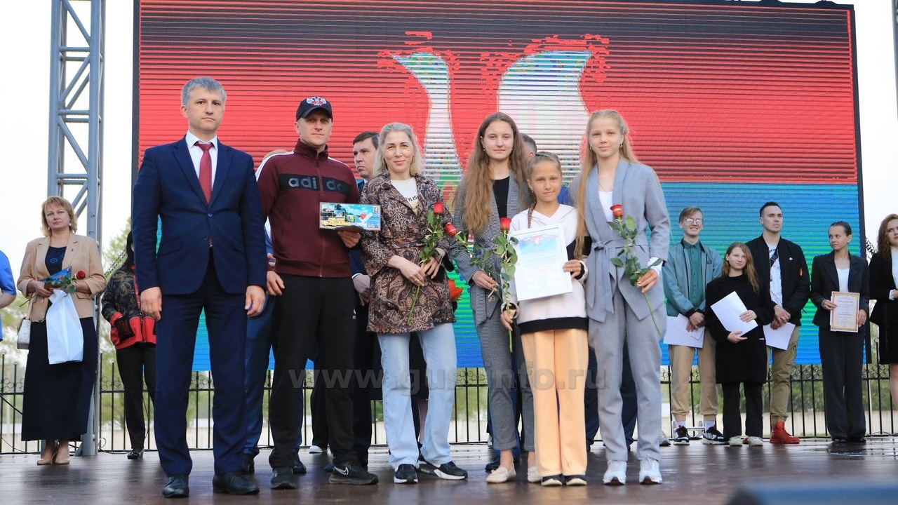 Свои заслуженные награды на сцене получили самый юный творческий гусевчанин Олег Макаров (детский сад №3) и его воспитатель Елена Алексеева. Мальчик стал победителем ежегодного творческого конкурса рисунка «Я люблю Гусь-Хрустальный». Его работу каждый житель сможет на протяжении целого года видеть на специальном баннере, расположенном возле стелы с сердечком на городском озере.