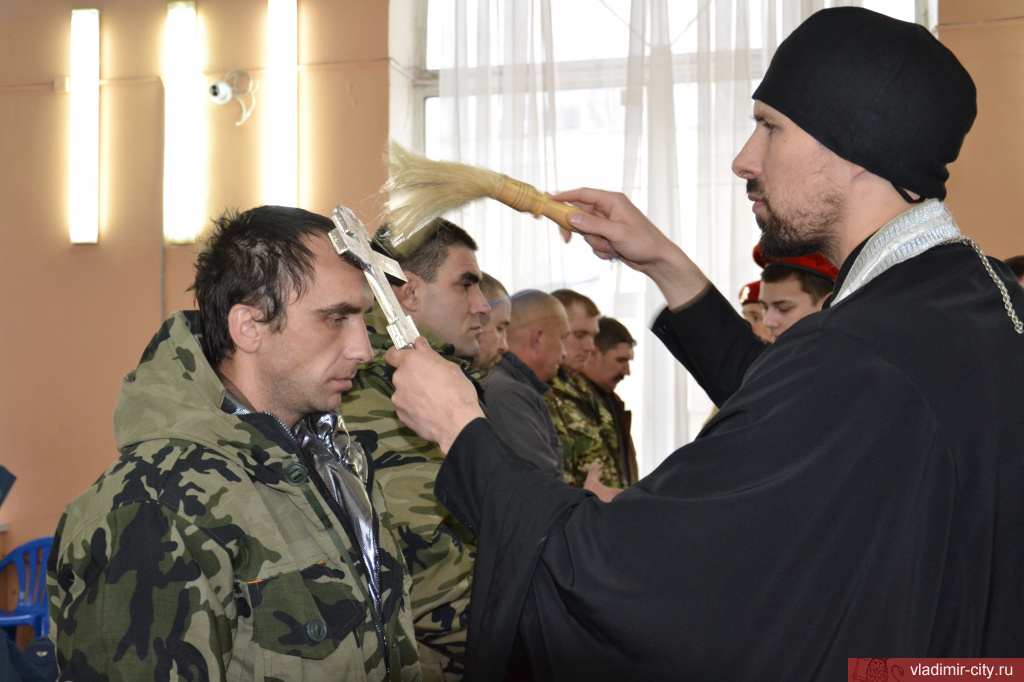 Мероприятие завершилось общей молитвой о воинах. Священник Свято-Казанского храма города Владимира отец Алексей (Горев) обратился к будущим бойцам с духовным наставлением.