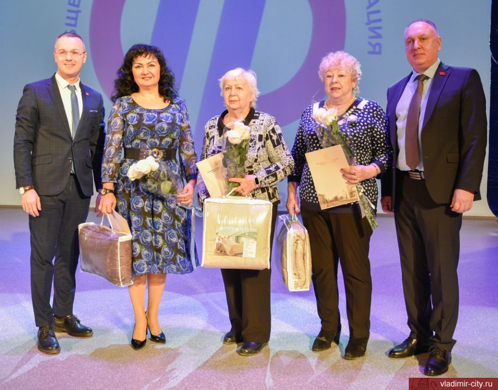 Владимирское региональное отделение «Союза пенсионеров России» - одно из самых активных, а придуманные и проводимые им акции — например, праздник Победы на улице Победителей - известны всей России. Активность владимирских пенсионеров, их позитивный настрой и желание работать во благо родной земли отметили в своих выступлениях первый заместитель главы администрации областной столицы Денис Егоров и председатель горсовета Николай Толбухин. За плодотворную работу и активное участие в общественной жизни города Владимира Денис Егоров и Николай Толбухин вручили Благодарственные письма главы города председателю городского отделения «Союза пенсионеров России» Ольге Лескиной, активистам организации Наталье Мишаниной и Валентине Обуховой