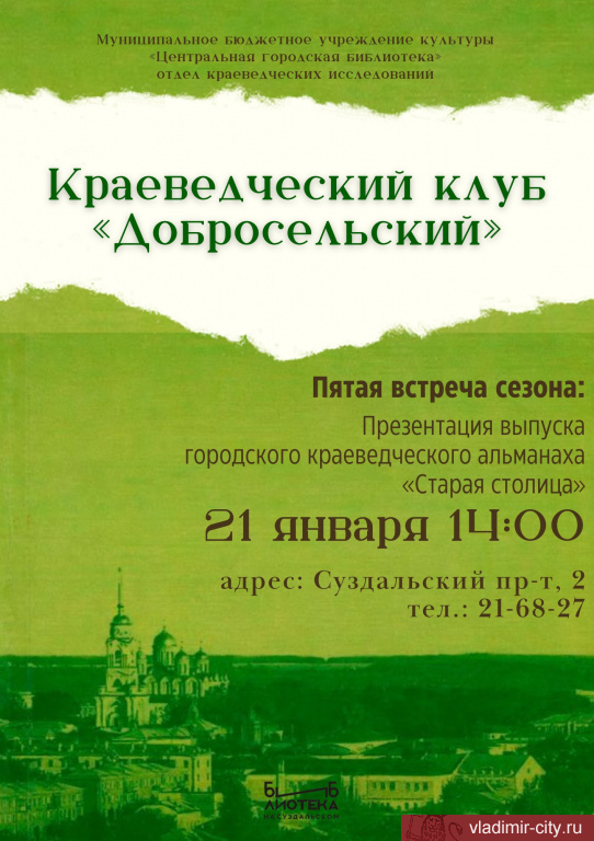 В читальном зале Библиотеки на Суздальском пройдёт встреча краеведческого клуба «Добросельский».
