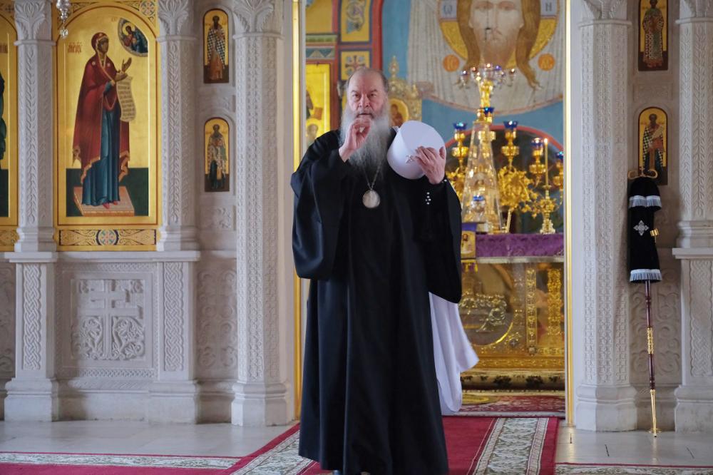 Его Высокопреосвященству сослужили наместник монастыря игумен Кирилл (Сурков) с братией во священном сане и клирики обители.