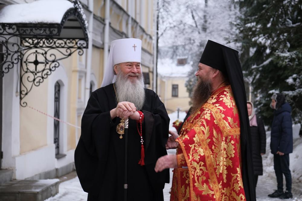 Его Высокопреосвященству сослужили наместник монастыря игумен Кирилл (Сурков) и клирики обители.