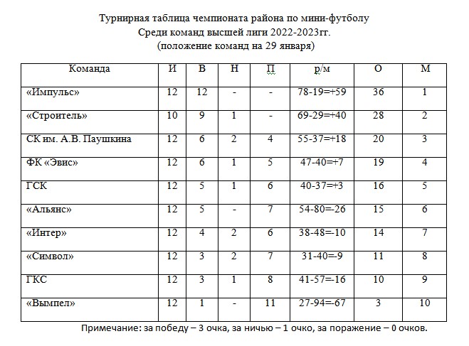 В субботу, 28 января, в спортивном комплексе имени Ю.Н. Каперского в г. Курлово состоялись очередные календарные матчи чемпионата района по мини-футболу среди команд высшей лиги. В них были зафиксированы следующие результаты: