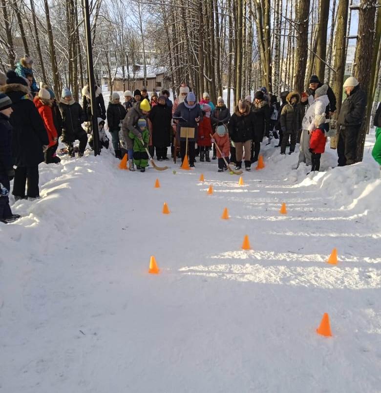 На красиво размеченных местах, под крики болельщиков, родителей, бабушек и дедушек дети с азартом справлялись с конкурсами: хоккеист, лыжник, футболист, бег змейкой, снайпер. На финише участников встречал Дед мороз со сладкими призами.