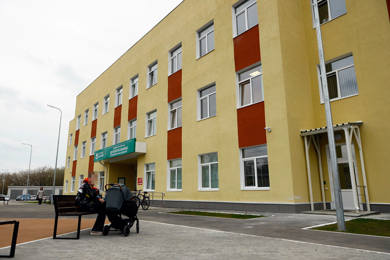 В просторном трёхэтажном здании расположились несколько отделений, в том числе консультативно-диагностическое, включающее 32 кабинета для участковых педиатров и врачей по специальностям. Готовится к работе клинико-диагностическая лаборатория. Мощность поликлиники – 350 посещений в смену. Кроме того, организован дневной стационар на 25 коек, что решает задачу реабилитации детей с хроническими заболеваниями.