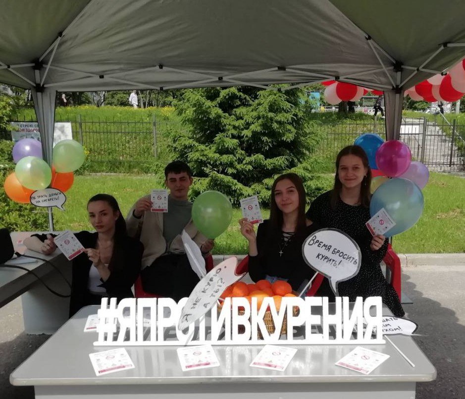 Во Всемирный день без табака, который традиционно отмечается 31 мая, обучающиеся Владимирского базового медицинского колледжа, в количестве более 100 человек, приняли активное участие в акции «Я против курения!», организованной ГБУЗ ОТ ВО «Областной центр общественного здоровья и медицинской профилактики» на территории поликлиники городской клинической больницы №5 города Владимира.