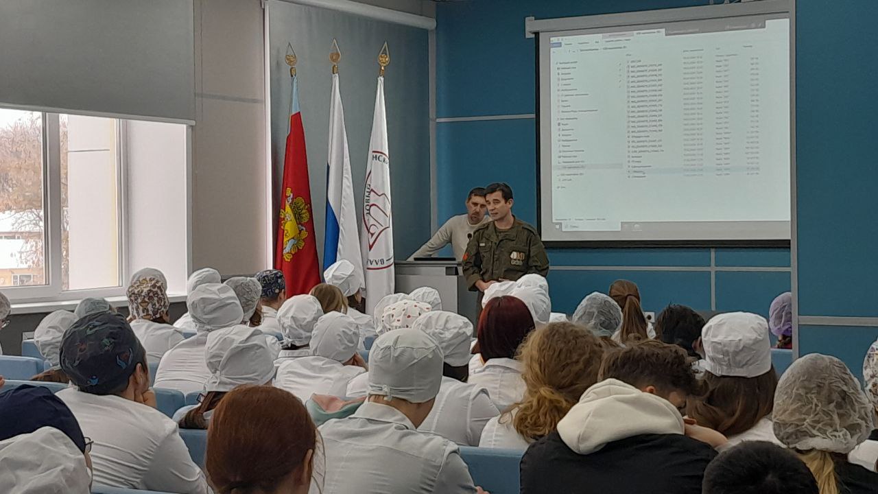 В рамках Всероссийского проекта «Диалоги с героями» во Владимирском базовом медицинском колледже 20 февраля 2024 года состоялась очередная встреча с участником специальной военной операции Геннадием Прохорычевым.
