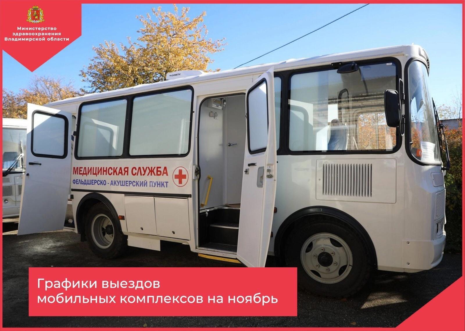 Графики выездов мобильных комплексов с указанием населенных пунктов: