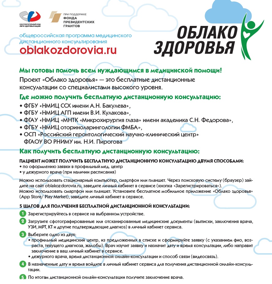 Ещё больше информации на официальном сайте проекта - https://oblakozdorovia.ru/