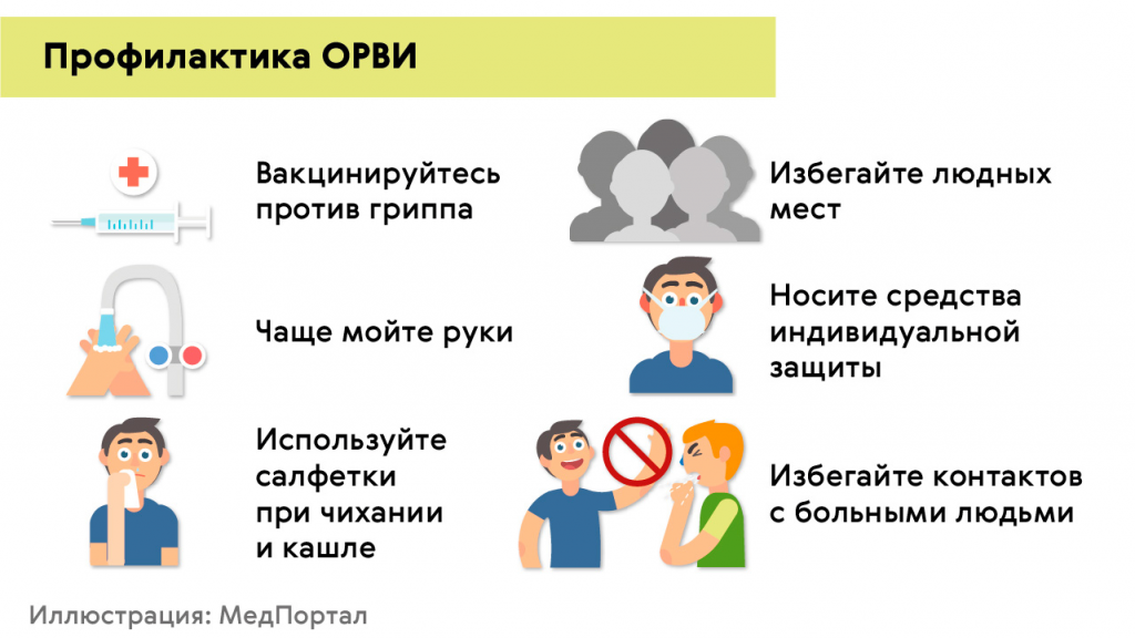 Также не следует забывать о профилактике гриппа. Она заключается в полноценном питании, прогулках на свежем воздухе, мытье рук, закаливании, проветривании помещения. В период эпидемии желательно избегать посещения мест с большим скоплением людей, принимать поливитамины.