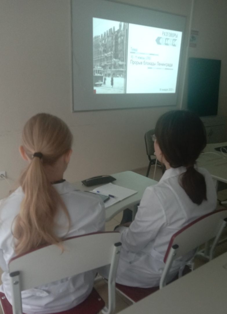 16 января 2023 года в рамках проекта Минпросвещения России «Разговоры о важном», во Владимирском базовом медицинском колледже были проведены внеурочные занятия по теме: «Прорыв блокады Ленинграда».